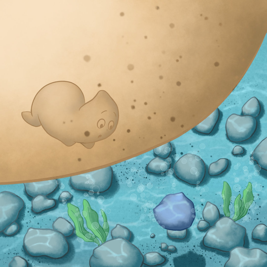 Emma sucht für ihren Opa einen ganz besonderen Stein, der von Herzen kommt. Doch im Fluss ist es gar nicht so leicht, den richtigen zu finden. Zum Glück hat sie Groovy, ihr Grübchen, das immer dann mehr scheint, wenn echte Freude in ihr aufblitzt.